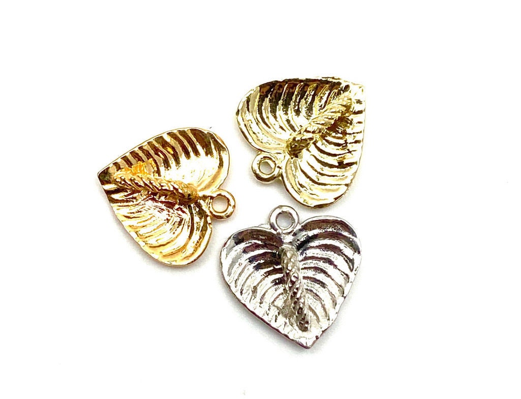 14K solid gold anthurium charm