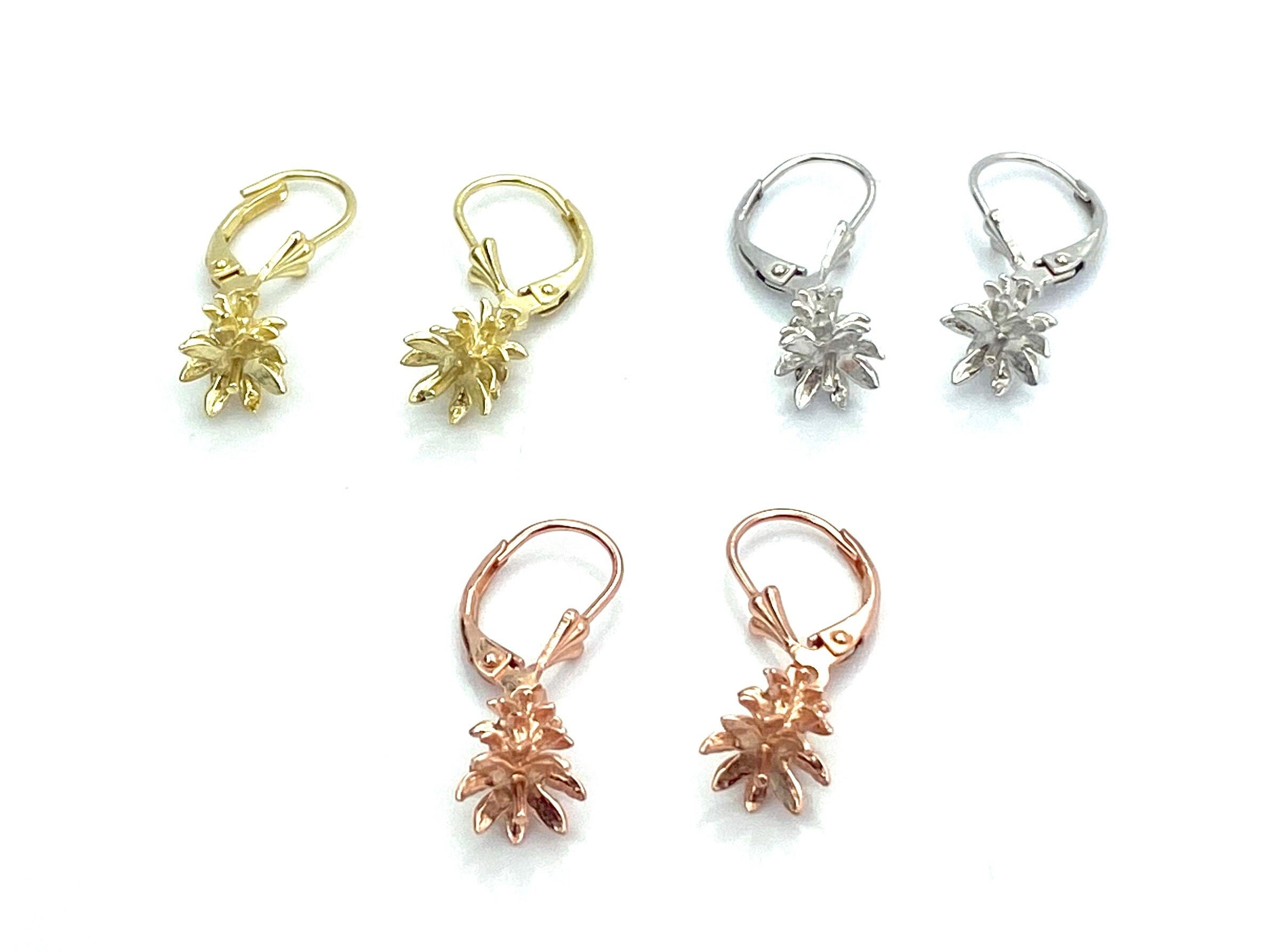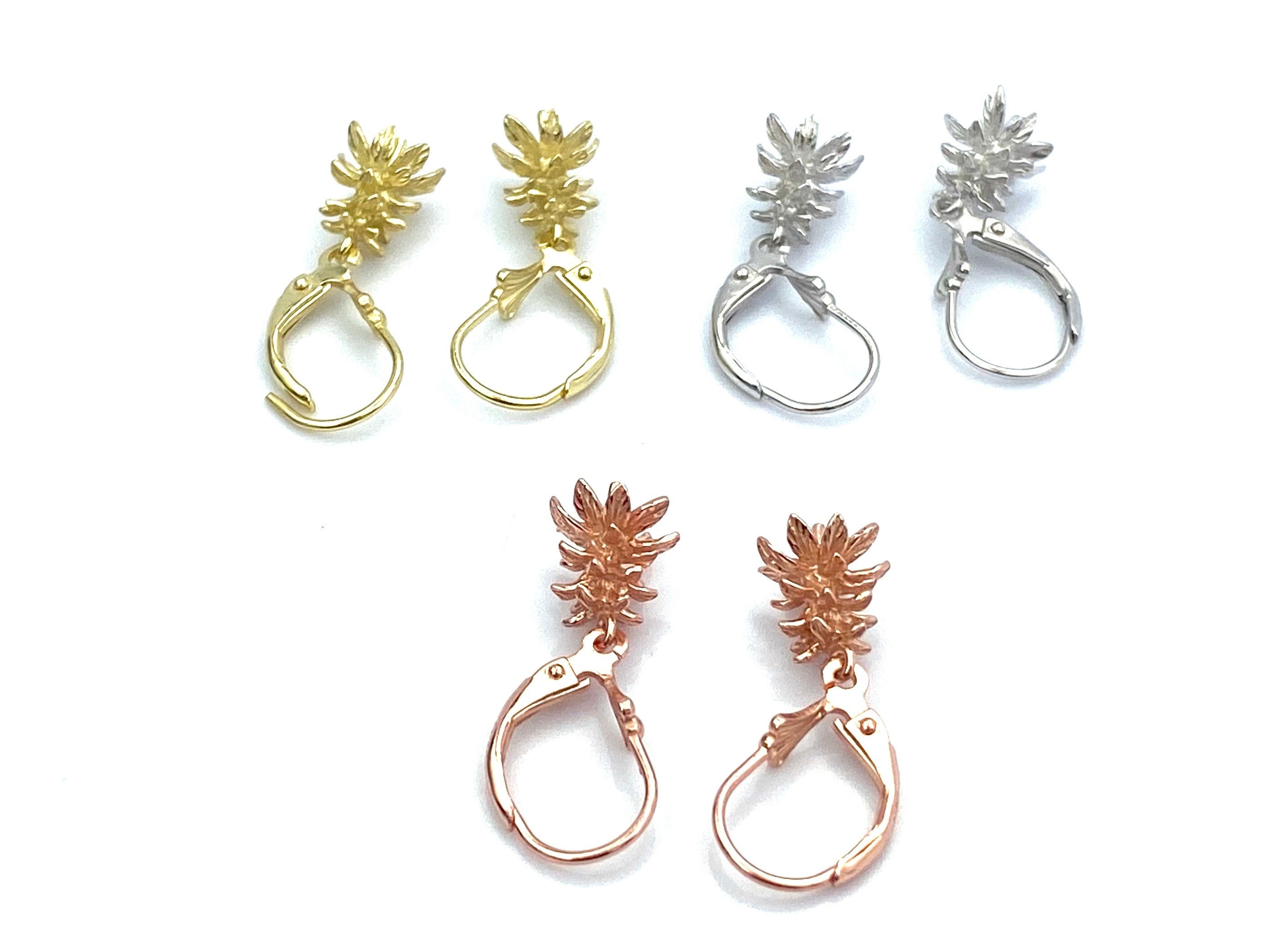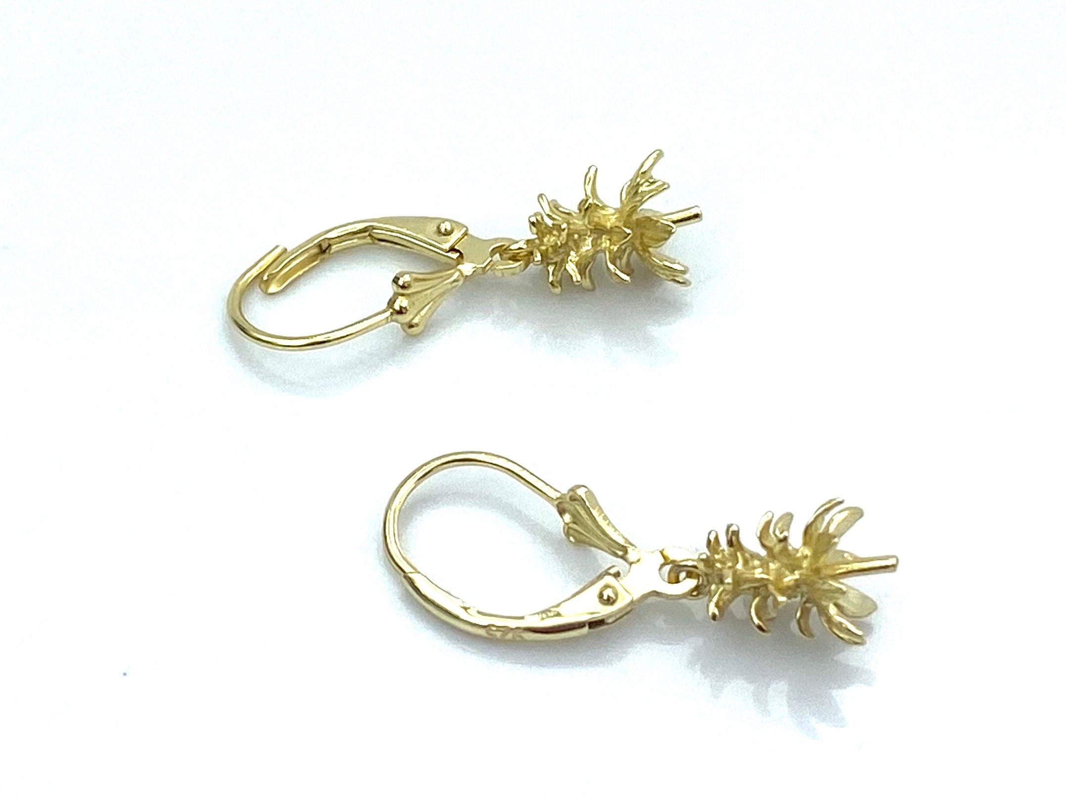 Beautiful pineapple vermeil with lever back earrings with a peg for a beautiful pearl or jade.