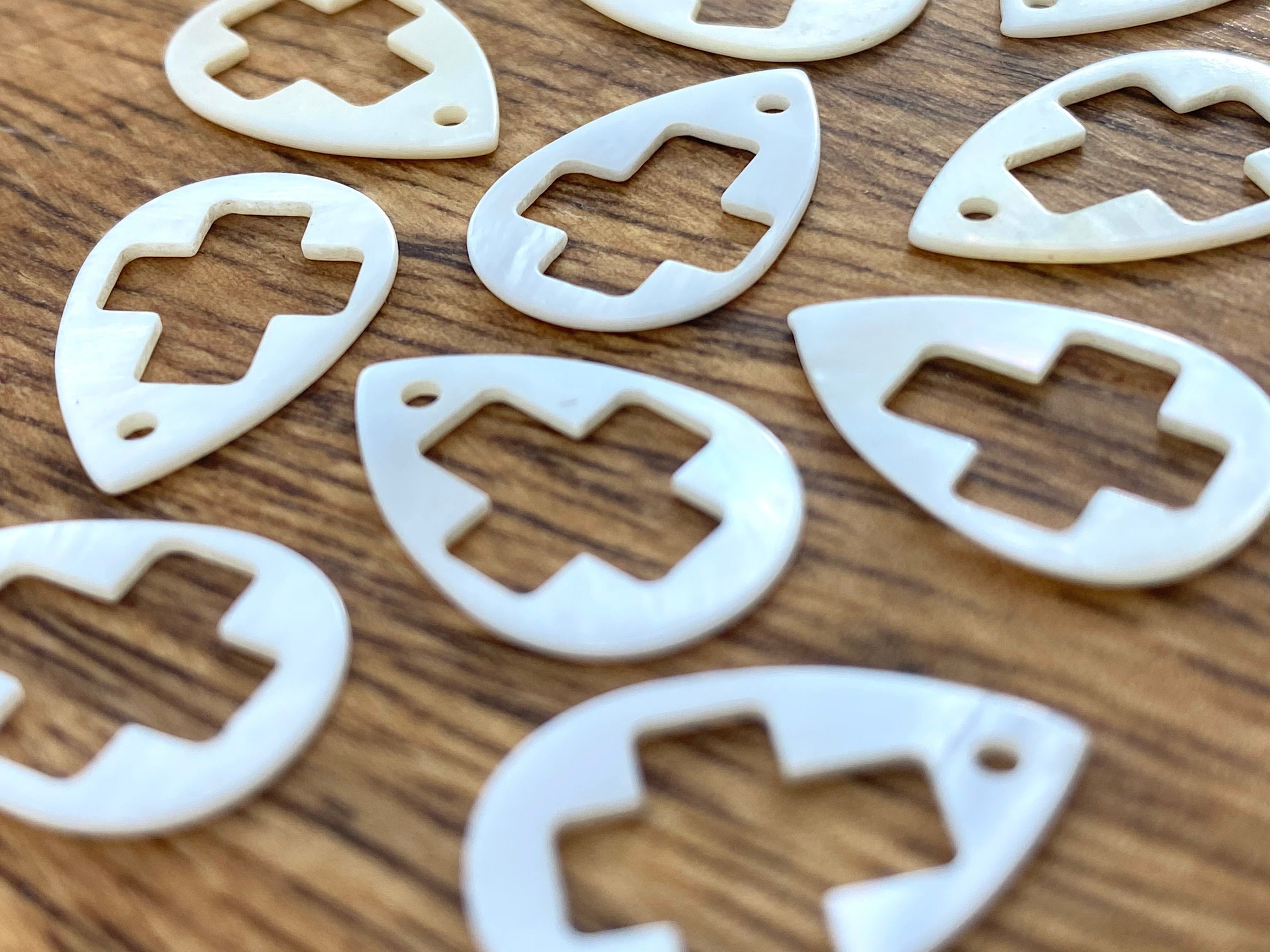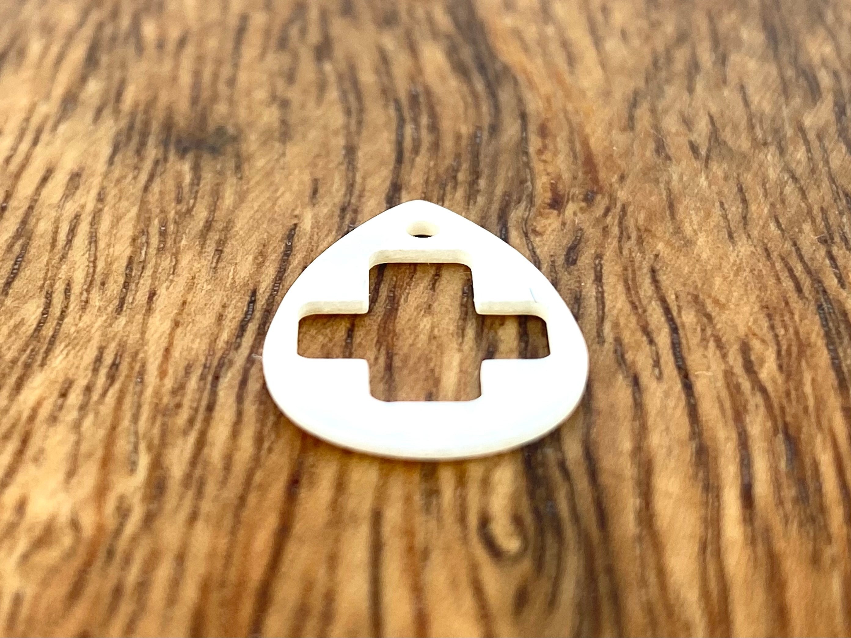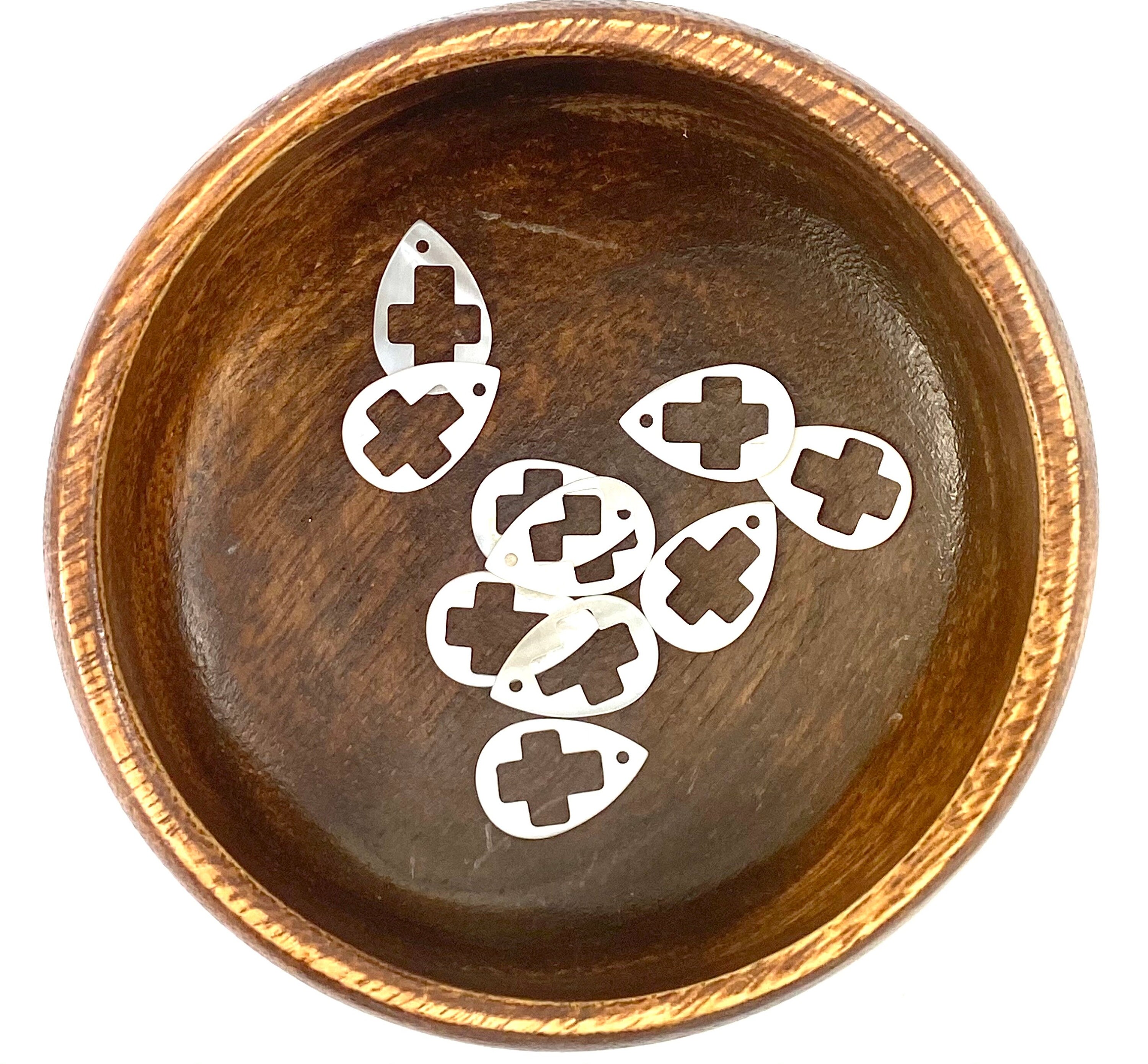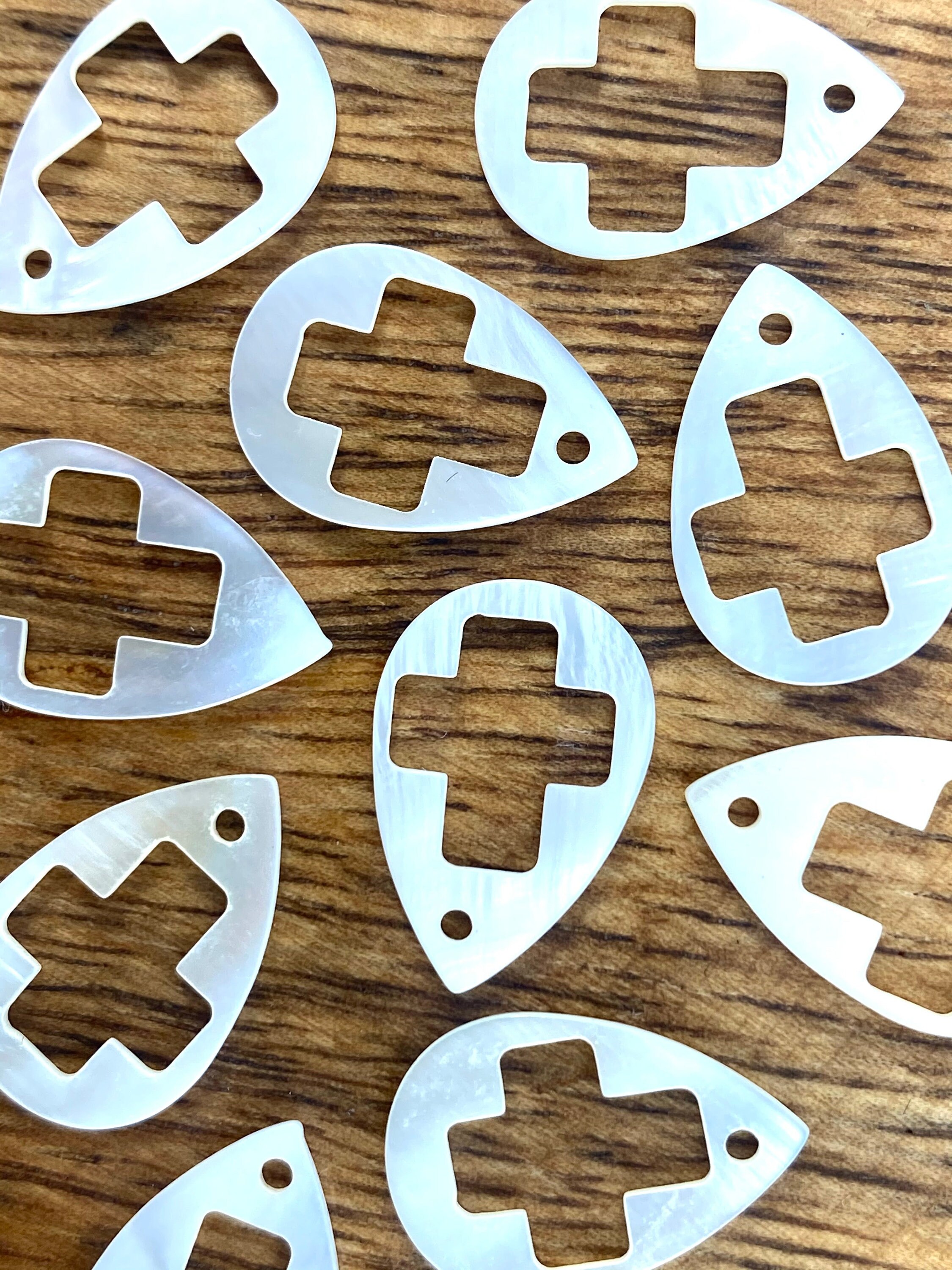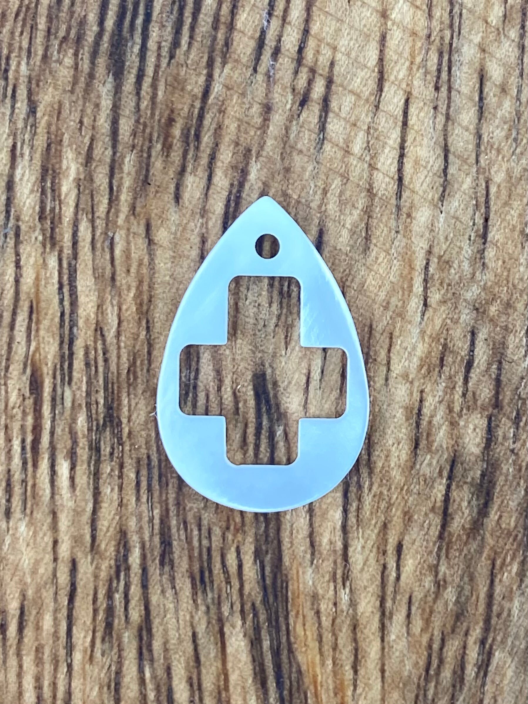 Tear drop shaped shell with a cross cut out.