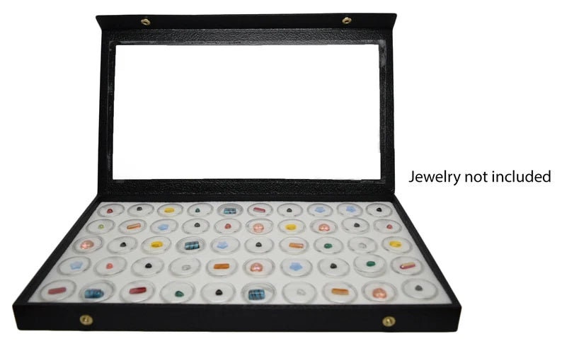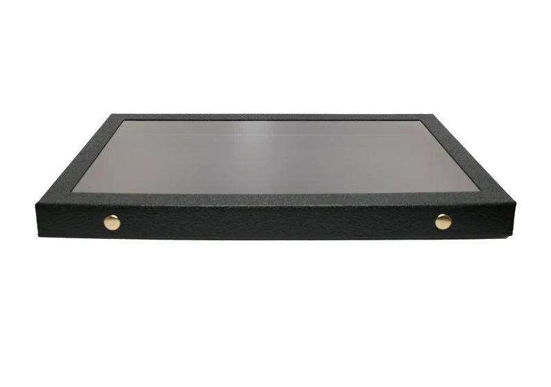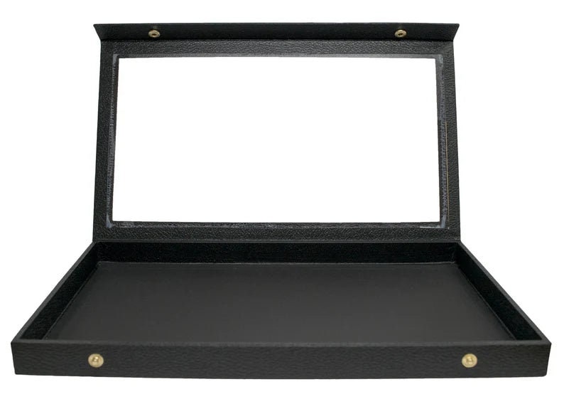 Acrylic Top Black Leather Cases , Snap Close Lid