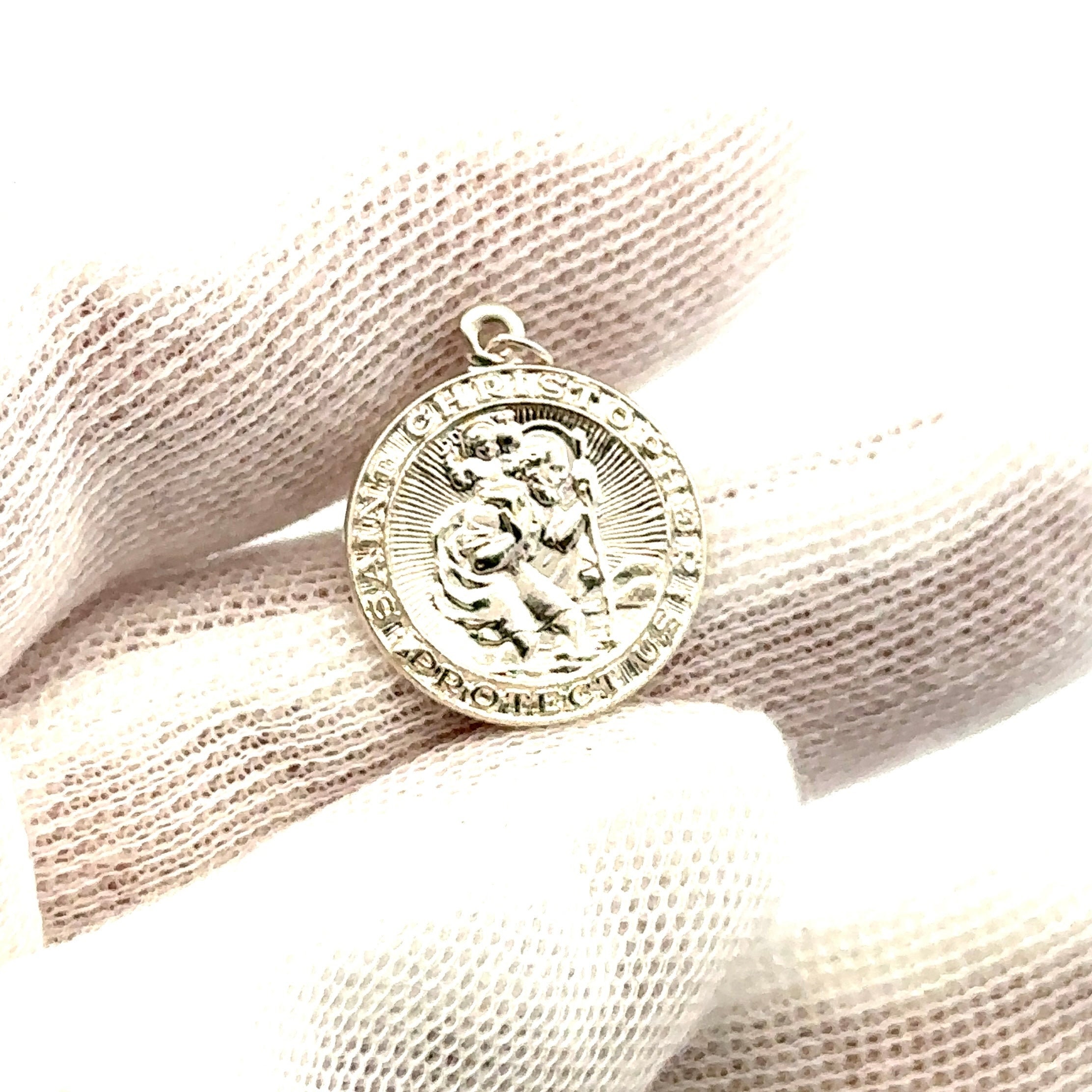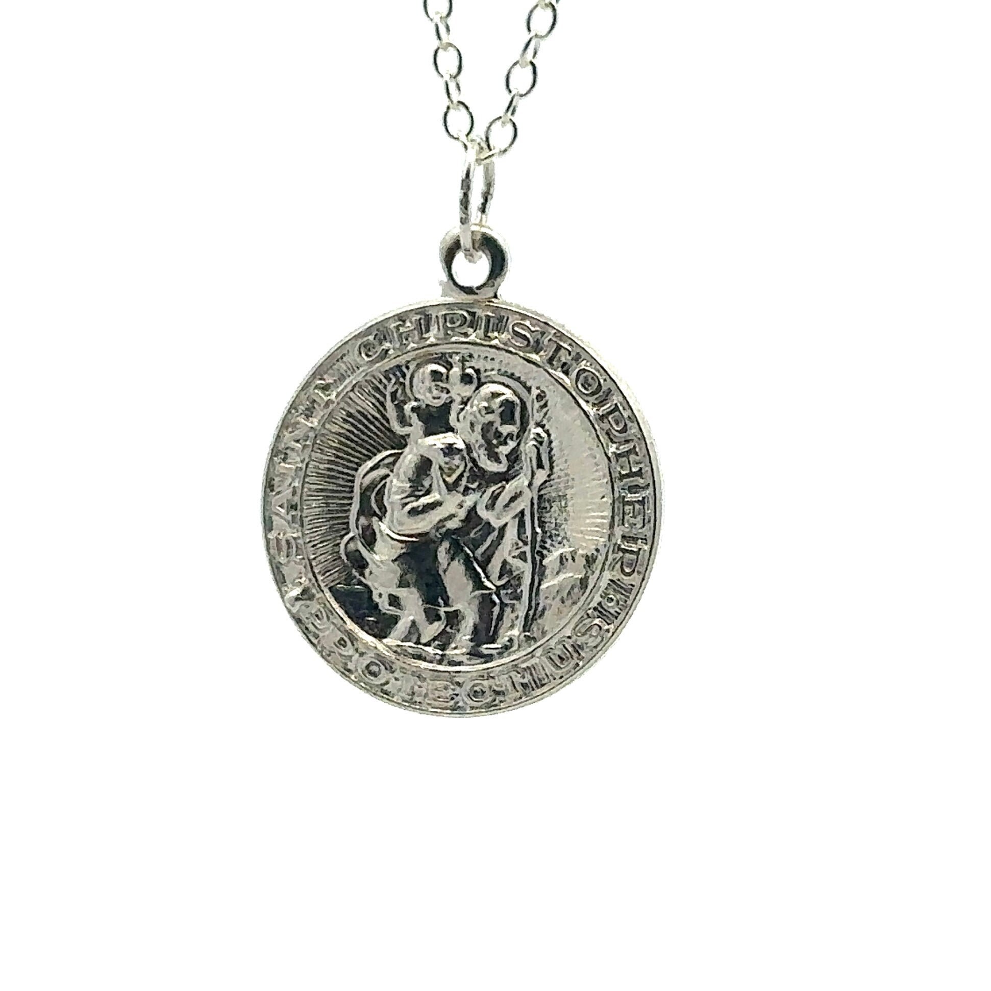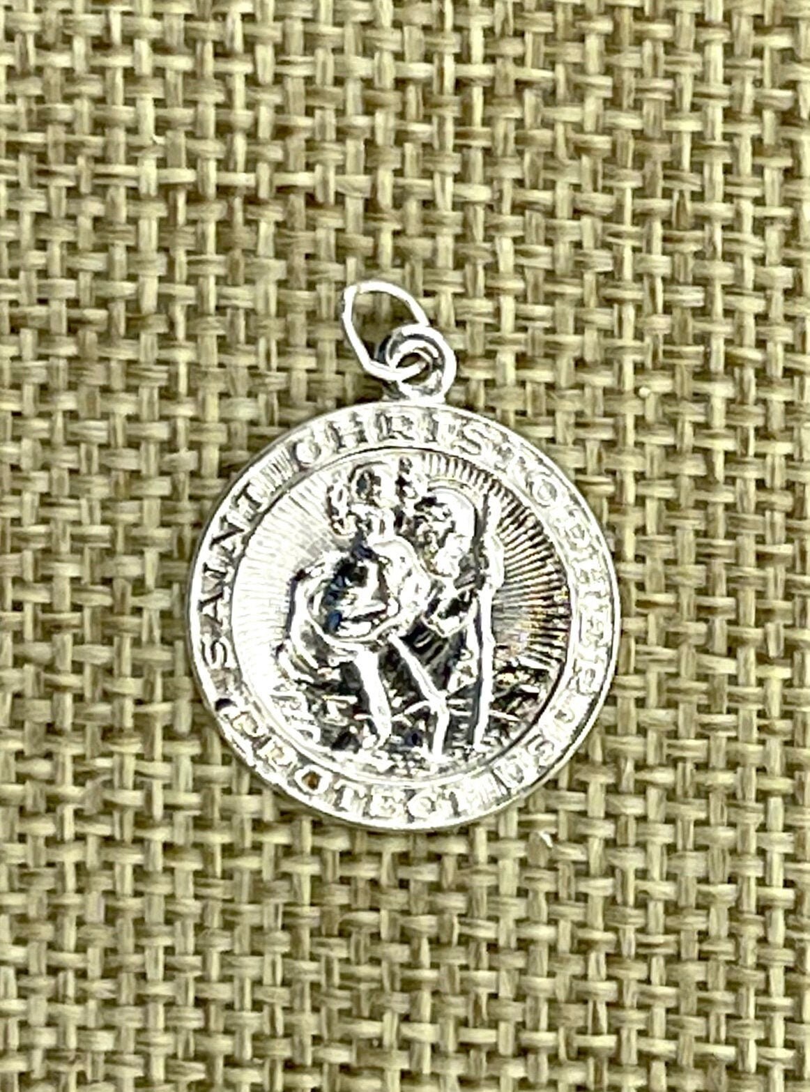 Stunning sterling silver circle Saint Christopher pendant.