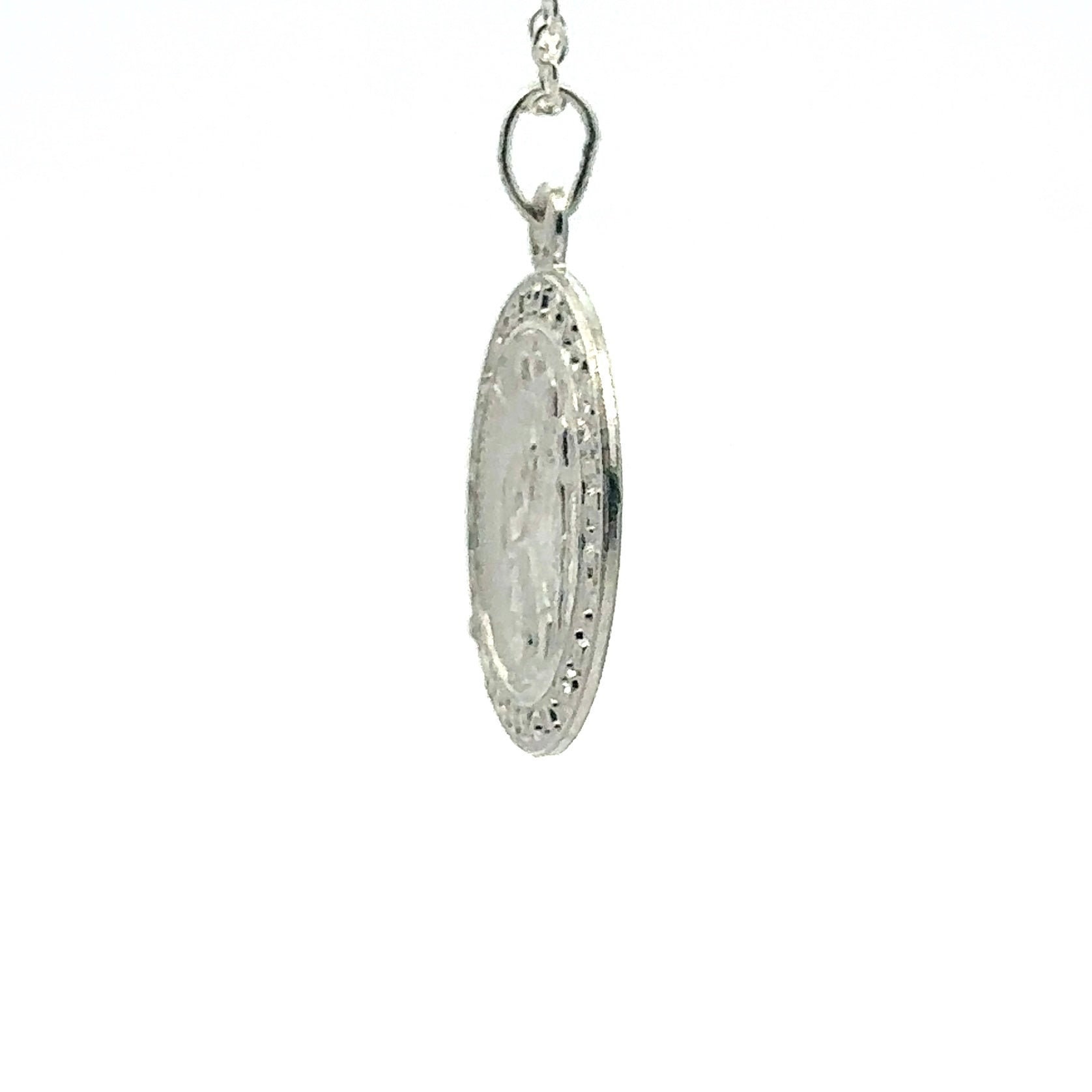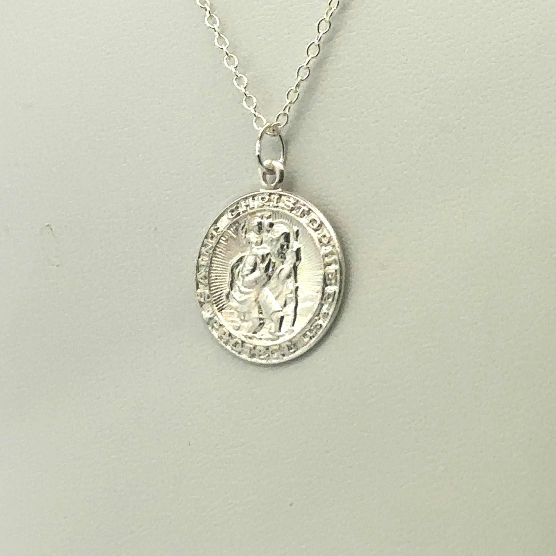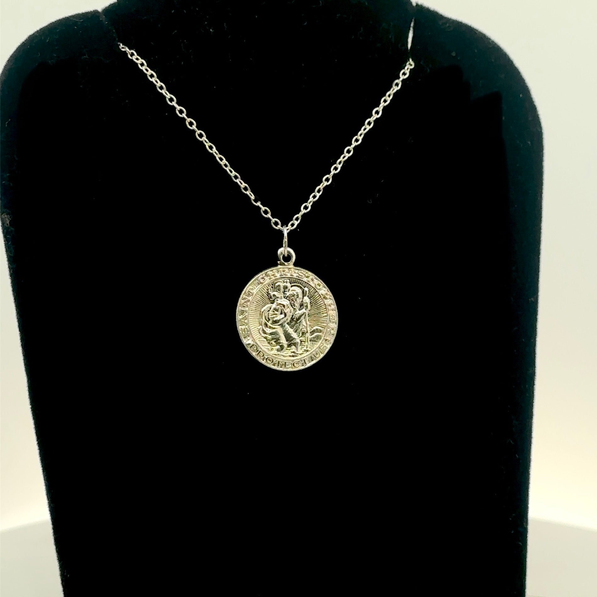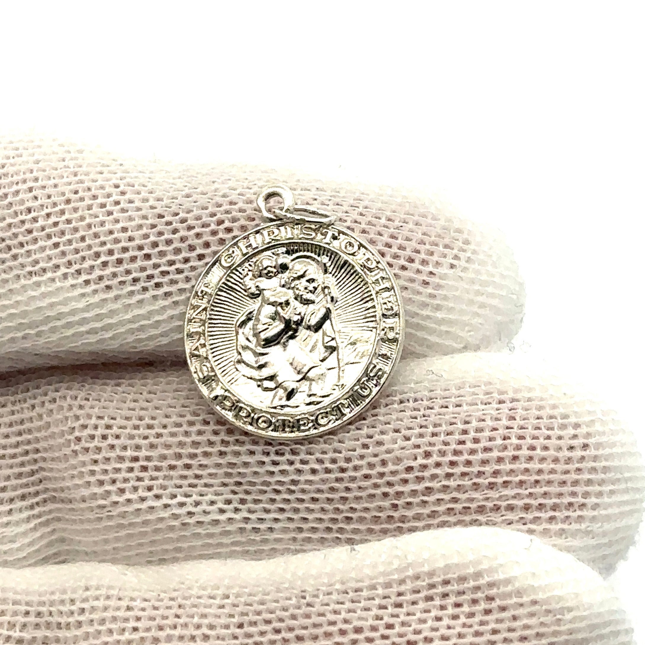 Stunning sterling silver circle Saint Christopher pendant.
