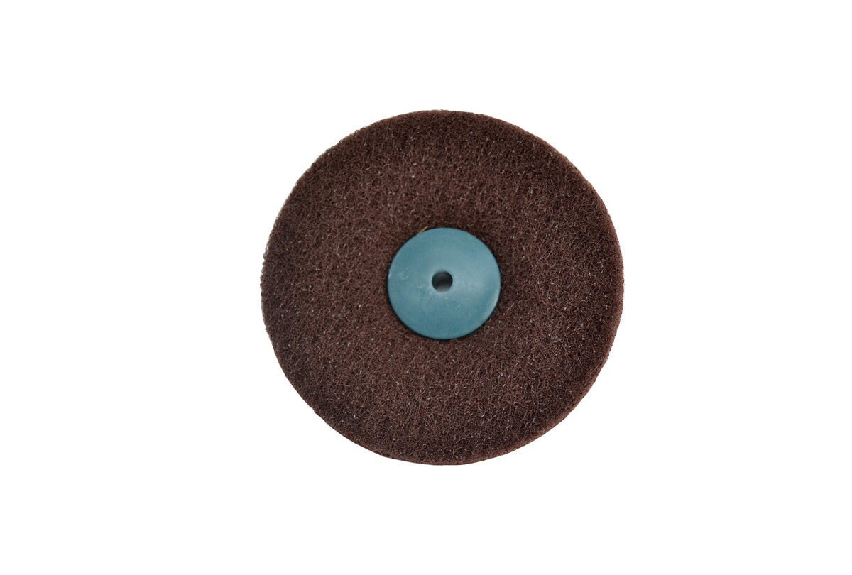 Synthetic fiber buffs may be used dry to produce a satin finish on gold, silver and other metals. Plastic center provides firm grip on tapered spindle. Sold individually.