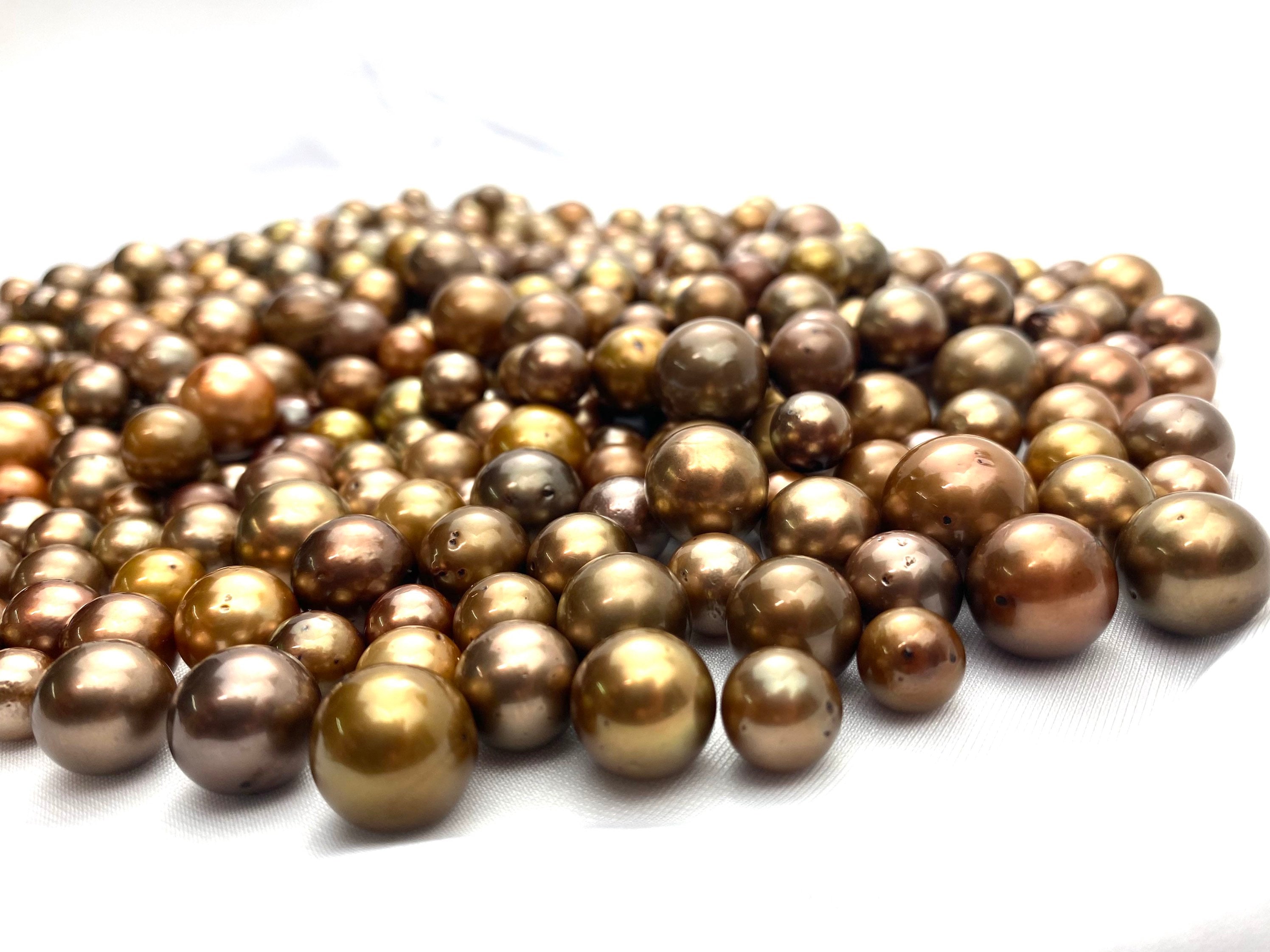 These are Round loose Tahitian Pearls that have been given a touch of Chocolate Color in Japan for over 5 months in a special process. They are real Tahitian Pearls.