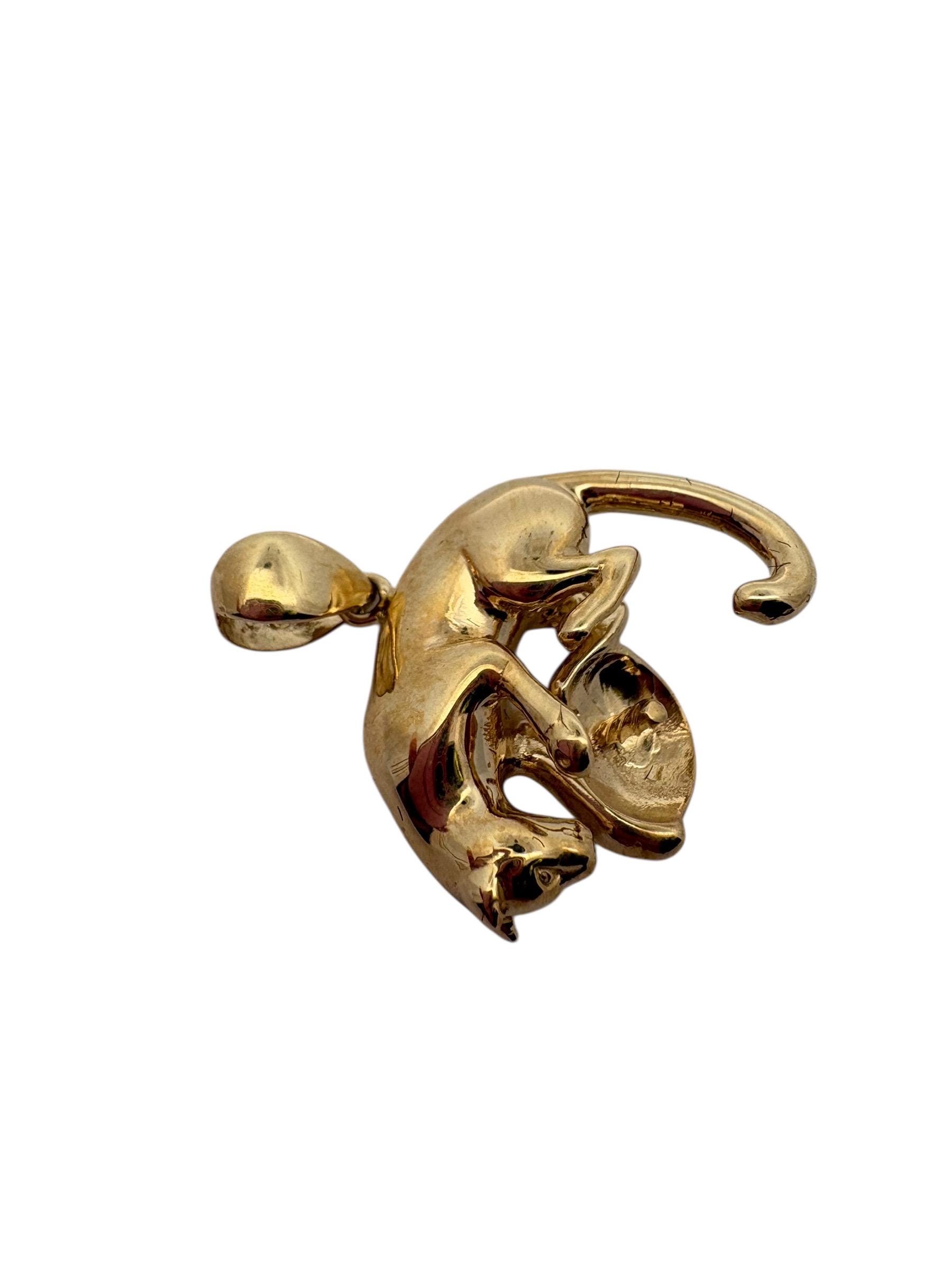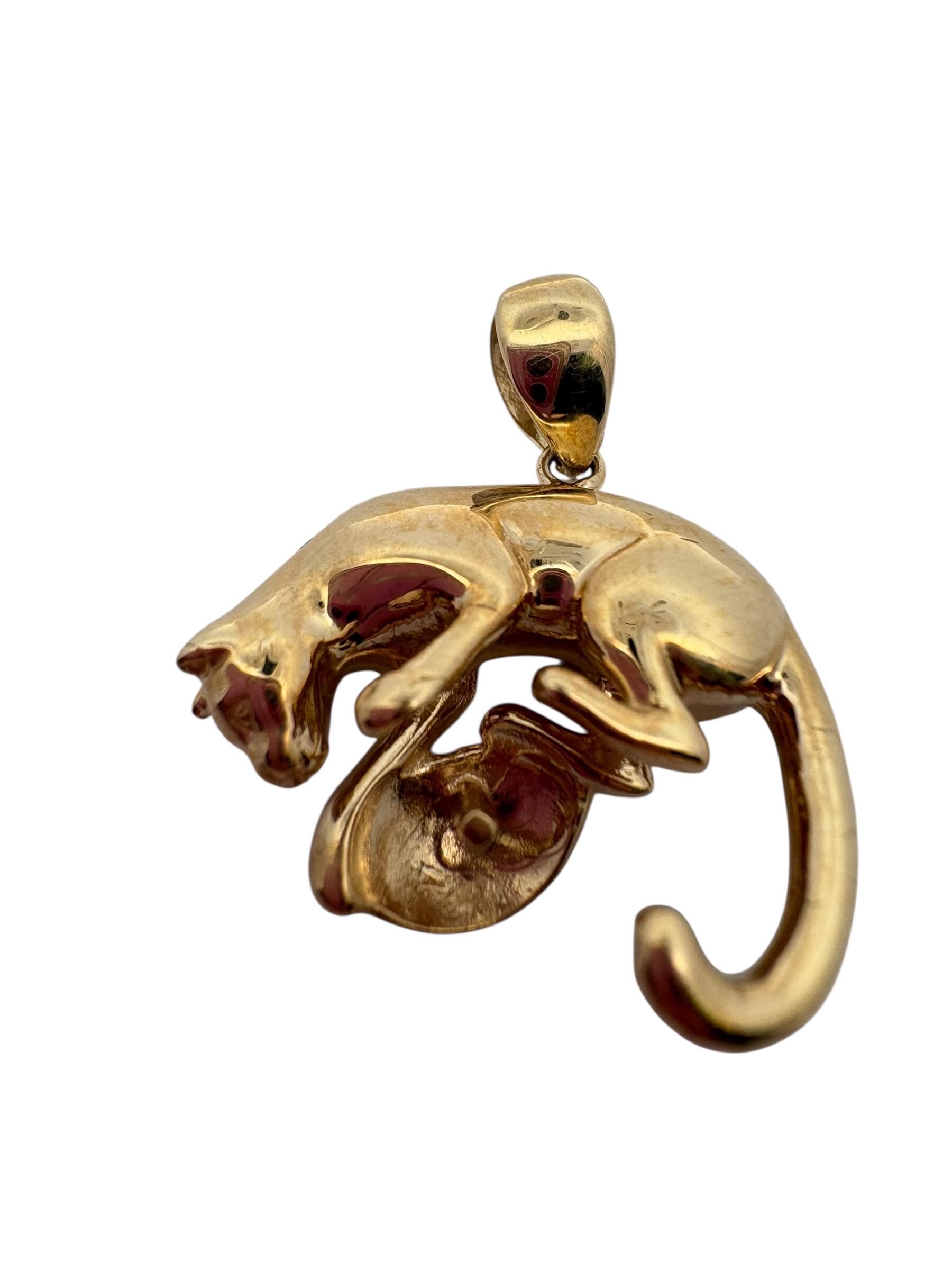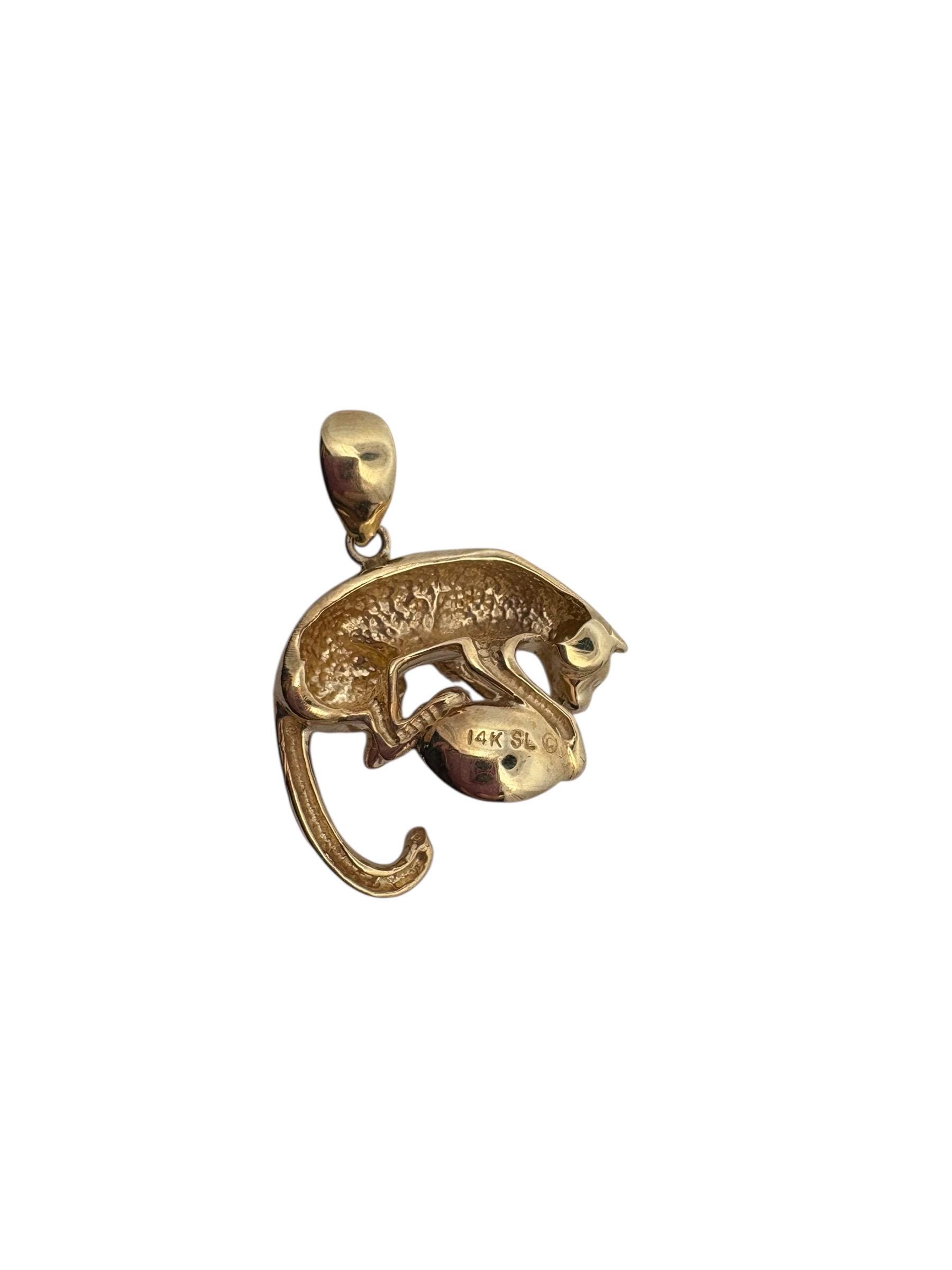 14K solid yellow gold panther pendant