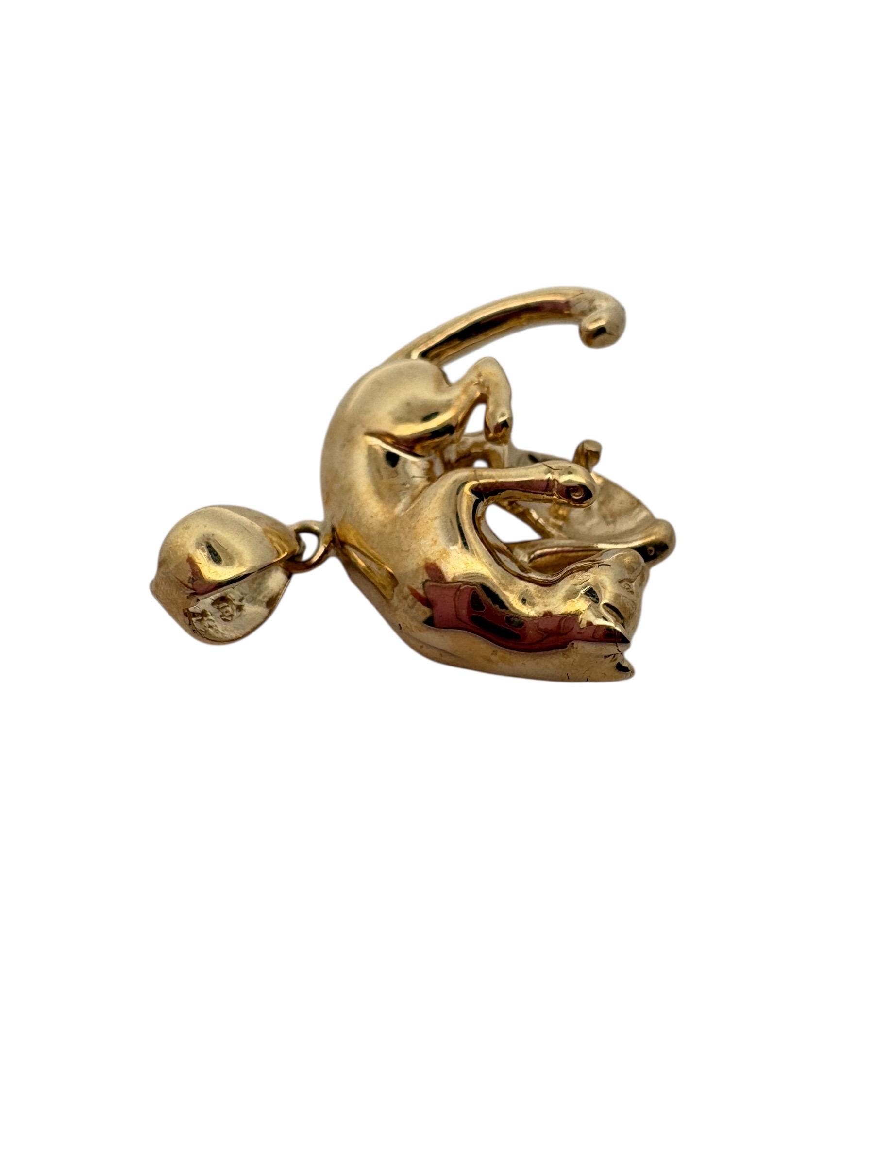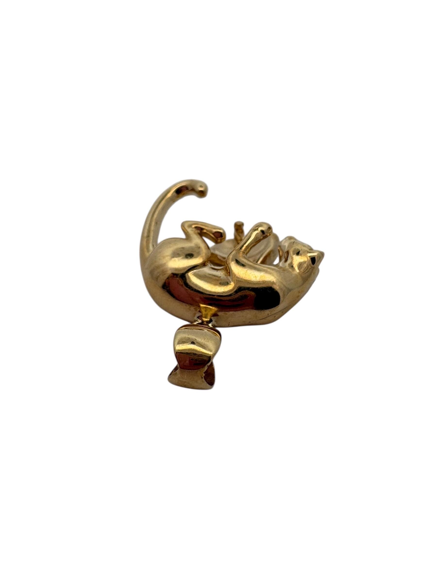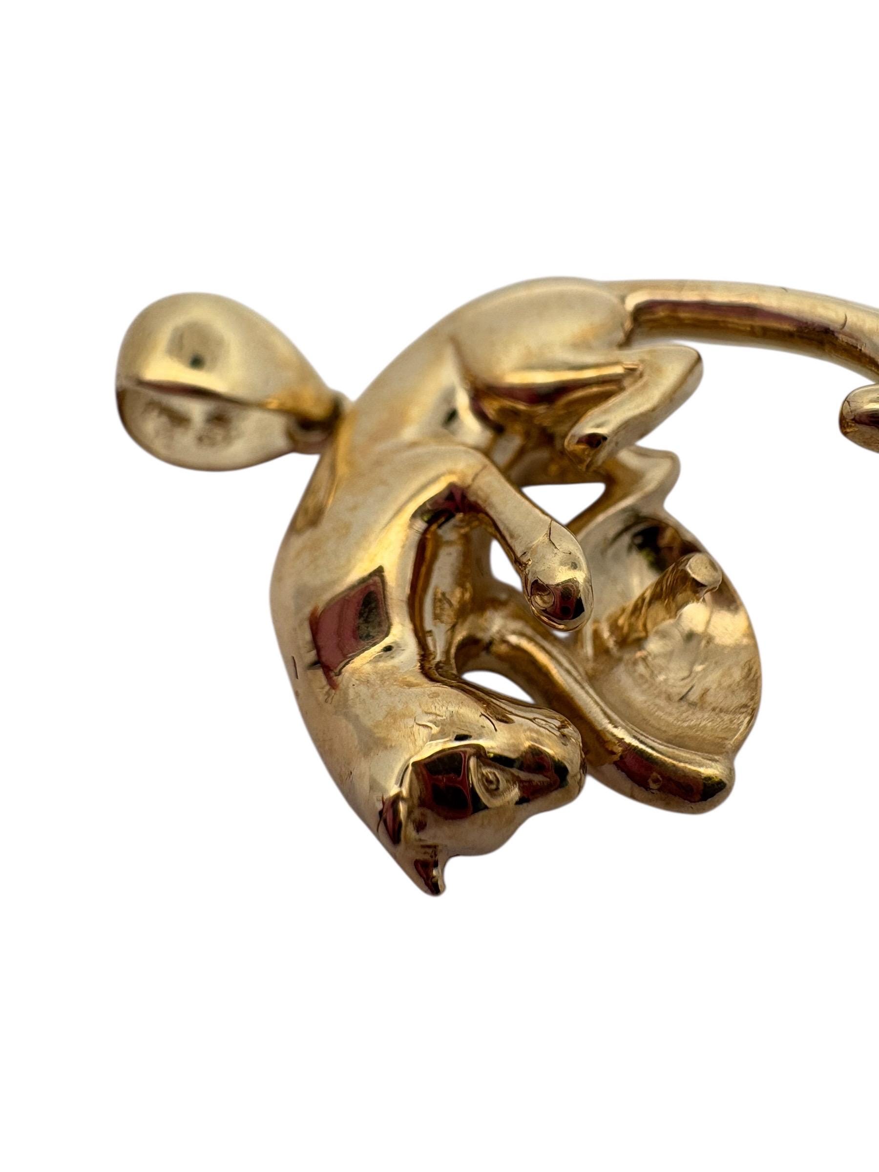 14K solid yellow gold panther pendant